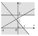 Miền nghiệm của hệ bất phương trình \(\left\{ \begin{array}{l}x + y - 1 > 0\\y \ge 2\\ - x + 2y > 3\end{array} \right.\) là phần không tô đậm của hình vẽ nào trong các hình vẽ sau?