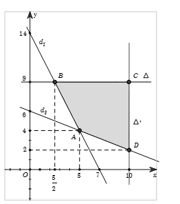 \(A\left( {5;4} \right),B\left( {\dfrac{5}{2};9} \right),C\left( {10;9} \right),D\left( {10;2} \right).\)