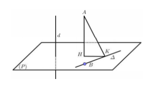 +) Gọi \(H,\,\,K\) lần lượt là hình chiếu của \(A\) lên \(\left( P \right)\) và \(\Delta \) ta có \(AH \le AK\).