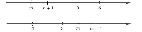 Cho hai tập hợp \(A = \left[ {m;m + 1} \right]\) và \(B = \left[ {0;3} \right).\) Tìm tất cả các giá trị thực của tham số \(m\) để \(A \cap B = \emptyset .\)