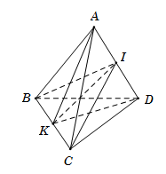 Điểm $K$ là trung điểm của $BC$ suy ra $K \in \left( {IBC} \right)\,\, \Rightarrow \,\,IK \subset \left( {IBC} \right).$
