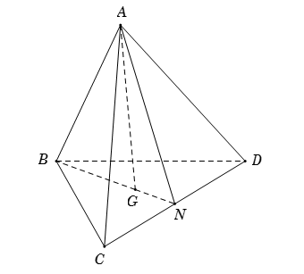 Mà \(G\) là trực tâm của tam giác \(\Delta BCD\) nên \(BG \bot CD\) tại \(N\) hay \(N\) là hình chiếu của \(B\) lên \(CD\).