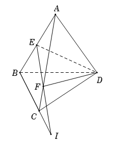 Cho điểm $A$ không nằm trên mặt phẳng $\left( \alpha \right)$ chứa tam giác $BCD.$ Lấy $E,\,\,F$ là các điểm lần lượt nằm trên các cạnh $AB,\,\,AC.$ Khi $EF$ và $BC$ cắt nhau tại $I,$ chọn kết luận không đúng: