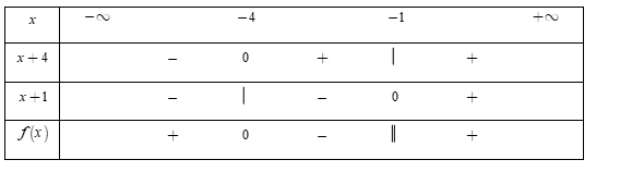 Dựa vào bảng xét dấu, ta thấy rằng $f\left( x \right) < 0 \Leftrightarrow x \in \left( { - \,4; - \,1} \right).$