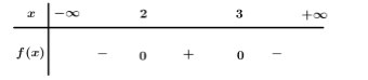 Ta có $f\left( x \right) = 0 \Leftrightarrow \left[ \begin{array}{l}x = 2\\x = 3\end{array} \right.$.