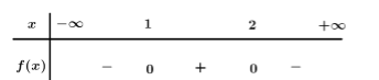 Ta có \(f\left( x \right) = 0\, \Leftrightarrow \,\left[ \begin{array}{l}x = 1\\x = 2\end{array} \right.\) .