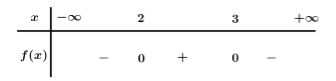 $f\left( x \right) > 0$với $2 < x{\rm{ }} < 3$ và $f\left( x \right) < 0$ với $x < 2$ hoặc $x > 3$.