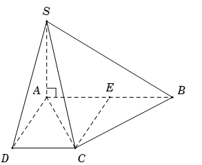 Cho hình chóp \(S.ABCD\) với đáy \(ABCD\) là hình thang vuông tại \(A\) và \(D\) , có \(AD = CD = a\), \(AB = 2a\). Cạnh bên \(SA\) vuông góc với đáy \(\left( {ABCD} \right)\), \(E\) là trung điểm của \(AB\). Chỉ ra mệnh đề sai trong các mệnh đề sau: