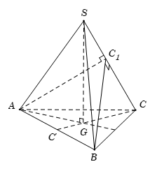 Cho hình chóp \(S.ABC\) có đáy \(ABC\) là tam giác đều cạnh \(a\) và \(SA = SB = SC = b\). Gọi G là trọng tâm \(\Delta ABC\). Xét mặt phẳng \((P)\) đi qua \(A\) và vuông góc với \(SC\). Tìm hệ thức liên hệ giữa \(a\) và \(b\) để \((P)\) cắt \(SC\) tại điểm \({C_1}\) nằm giữa \(S\) và \(C\).