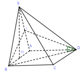 Suy ra \(BI \bot (SAD) \Rightarrow \alpha = \widehat {IDB}\)