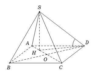 Do đó $\widehat {SD,\left( {ABCD} \right)} = \widehat {\left( {SD,HD} \right)} = \widehat {SDH}.$