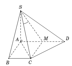 Gọi \(M\) là trung điểm \(AD\), suy ra \(ABCM\) là hình vuông nên \(CM \bot AD\).