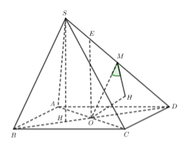 - Gọi \(M\) là trung điểm của \(SD\), nhận xét góc giữa \(SB\) và \(\left( {SCD} \right)\) cũng bằng góc giữa \(OM\) và \(\left( {SCD} \right)\).