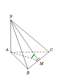 $\left\{ \begin{array}{l}\left( {SBC} \right) \cap \left( {ABC} \right) = BC\\\left( {SBC} \right) \supset SM \bot BC\\\left( {ABC} \right) \supset AM \bot BC\end{array} \right. \Rightarrow \widehat {\left( {\left( {SBC} \right);\left( {ABC} \right)} \right)} = \widehat {\left( {SM;AM} \right)} = \widehat {SMA}.$