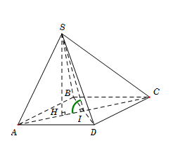Vì $ABCD$ là hình thoi nên $HI \bot BD$. Tam giác $SBD$ cân tại $S$ nên $SI \bot BD$. Do đó $\widehat {\left( {SBD} \right);\left( {ABCD} \right)} = \widehat {\left( {SI;AI} \right)} = \widehat {SIH}.$.