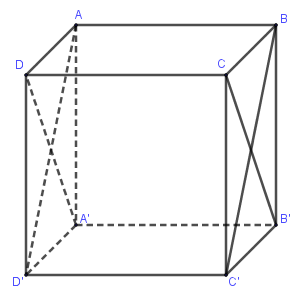 Do đó góc giữa hai mp \(\left( {ABC'D'} \right)\) và \(\left( {A'B'CD} \right)\) bằng góc \(AD'\) và \(A'D\)