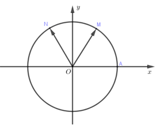 - Xác định vị trí các điểm \(M,N\) và xác định góc hình học \(\widehat {AON}\) suy ra số đo cung lượng giác \(AN\)