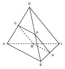 Cho tứ diện $ABCD.$ Gọi $M,N,P,Q$ lần lượt là trung điểm $AC, BC, BD, AD.$ Tìm điều kiện của tứ diện $ABCD$ để $MNPQ$ là hình thoi?