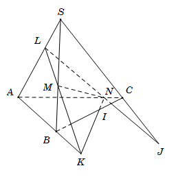● \(J\) là điểm chung của \(\left( {LMN} \right)\) và \(\left( {SBC} \right)\).