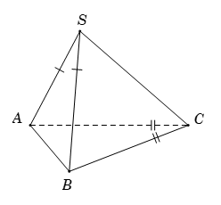 Do đó \(CS.CA.\cos \widehat {SCA} - CS.CB.\cos \widehat {SCB} = 0\) (do \(CA = CB\)) hay \(\overrightarrow {SC} .\overrightarrow {AB} = 0\)