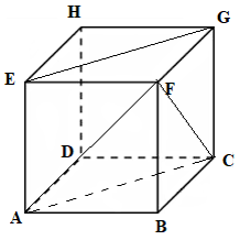 Cho hình lập phương $ABCD.EFGH$. Hãy xác định góc giữa cặp vectơ \(\overrightarrow {AF} \) và \(\overrightarrow {EG} \)?
