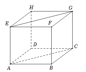 Vì $\cos \left( {AB,CD} \right) = \dfrac{{\left| { - \dfrac{1}{4}AB.CD} \right|}}{{AB.CD}} = \dfrac{1}{4}$ (\(AEGC\) là hình chữ nhật) nên \(\left( {\overrightarrow {AB} ,\overrightarrow {EG} } \right) = \left( {\overrightarrow {AB} ,\overrightarrow {AC} } \right) = \widehat {BAC} = {45^0}\) (\(ABCD\) là hình vuông).