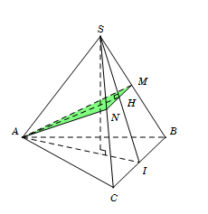 Dễ thấy $H$ là trung điểm của $MN$ mà $AH \bot \left( {SBC} \right)$ suy ra $AH \bot MN$. Tam giác $AMN$ có đường cao $AH$ vừa là trung tuyến nên nó là tam giác cân đỉnh $A$.