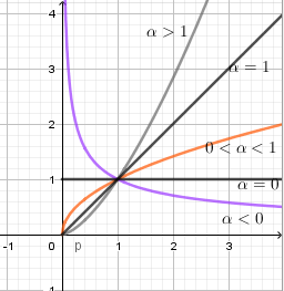Sử dụng các dáng đồ thị hàm số \(y = {x^\alpha }\) ứng với các điều kiện khác nhau của \(\alpha \):