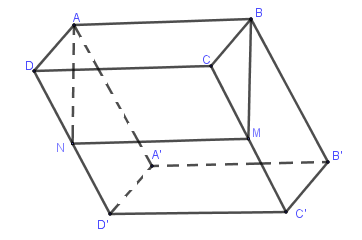 \(\left. \begin{array}{l}\left( {ABB'A'} \right)//\left( {DCC'D'} \right)\\\left( {ABMN} \right) \cap \left( {ABB'A'} \right) = AB\\\left( {ABMN} \right) \cap \left( {DCC'D'} \right) = MN\end{array} \right\} \Rightarrow AB//MN\)