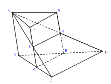 Gọi \(D = AN \cap A'C' \Rightarrow D \in \left( {AMN} \right) \cap \left( {A'B'C'} \right)\) và \(E = AM \cap A'B' \Rightarrow E \in \left( {AMN} \right) \cap \left( {A'B'C'} \right)\).