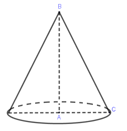 Quay hình tam giác vuông \(ABC\) quanh trục \(AB\) ta được hình nón đỉnh \(B\).