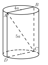 Do đó khối trụ có bán kính đáy \(r = \dfrac{{AB}}{2} = 2a\), chiều cao \(h = AC = 3a\).