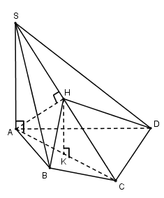 Trong $\left( {SAC} \right)$ kẻ \(HK//SA \Rightarrow HK \bot \left( {ABCD} \right)\)