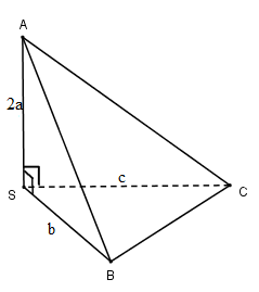 Cho hình chóp \(S.ABC\) có \(SA \bot SB,SB \bot SC,SA \bot SC;SA = 2a,SB = b,SC = c\). Thể tích khối chóp là: