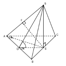 (Vì \(SE \bot \left( {ABC} \right) \Rightarrow SE \bot DE \Rightarrow \Delta SDE\) vuông tại E \( \Rightarrow \widehat {SDE} < {90^0}\) )