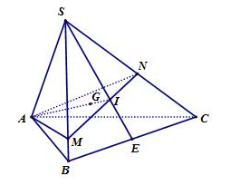Trong \(\left( {SAE} \right)\), kéo dài \(AG\) cắt \(SE\) tại \(I\). Khi đó \(I \in MN\) và \(I\) là trọng tâm tam giác \(SBC.\)