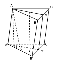 Kẻ \(AH \bot A'M'\left( {H \in A'M'} \right) \Rightarrow AH \bot \left( {A'B'C'} \right) \Rightarrow A'H\)là hình chiếu vuông góc của AA’ trên (A’B’C’)