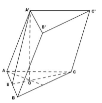 \(\left\{ \begin{array}{l}OE \bot AB\\A'O \bot AB\left( {A'O \bot \left( {ABC} \right)} \right)\end{array} \right. \Rightarrow AB \bot \left( {A'OE} \right) \Rightarrow AB \bot A'E\)