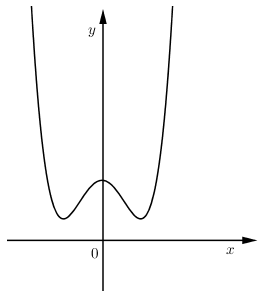 Vẽ dạng đồ thị hàm số bậc bốn trùng phương có $a > 0,b < 0$ và tìm điều kiện để đồ thị hàm số có $4$ điểm chung với trục hoành.