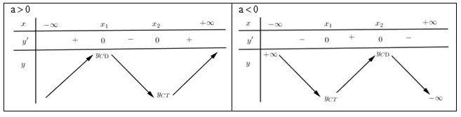 Hàm số có $2$ cực trị thì có bảng biến thiên ở các dạng sau: