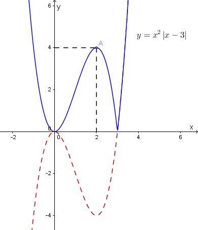 Do đó, ta có đồ thị hàm số $y = {x^2}\left| {x - 3} \right|$: