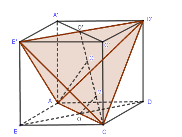 Xét tứ diện \(ACB'D'\) có \(AB' = AC = AD' = B'C = B'D' = CD' = a\sqrt 2 \) nên nó là tứ diện đều cạnh \(a\sqrt 2 \).