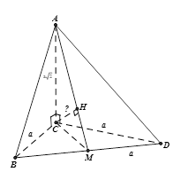 $\begin{array}{l}\dfrac{1}{{C{H^2}}} = \dfrac{1}{{C{A^2}}} + \dfrac{1}{{C{M^2}}} = \dfrac{1}{{2{a^2}}} + \dfrac{1}{{\dfrac{{3{a^2}}}{4}}} = \dfrac{{11}}{{6{a^2}}}\\ \Rightarrow C{H^2} = \dfrac{{6{a^2}}}{{11}} \Rightarrow CH = a\sqrt {\dfrac{6}{{11}}} \end{array}$