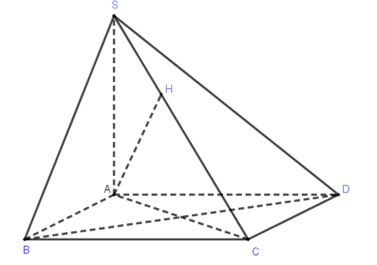 $ \Rightarrow AH = \dfrac{{SA.AC}}{{\sqrt {S{A^2} + A{C^2}} }} = \dfrac{{2a.a}}{{\sqrt {4{a^2} + {a^2}} }} = \dfrac{{2\sqrt 5 a}}{5}$.