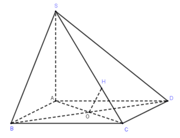 Kẻ $OH \bot SC$, khi đó $d\left( {O,SC} \right) = OH$. Ta có: $\Delta SAC \sim \Delta OHC(g-g)$ nên $\dfrac{{OH}}{{SA}} = \dfrac{{OC}}{{SC}} \Rightarrow OH = \dfrac{{OC}}{{SC}}.SA$.