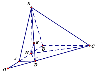 Trong đó \(K\) là hình chiếu vuông góc của \(H \) lên \(SD\). Ta có: