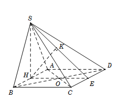 Gọi $E$ là trung điểm $CD$; $K$ là hình chiếu vuông góc của $H$ trên $SE$.