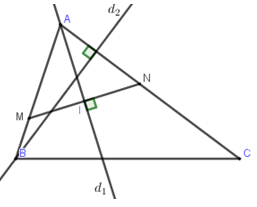 - Gọi \(N\) là điểm đối xứng của \(M\) qua đường phân giác trong \({d_1}\)