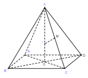 Tam giác \(SOC\) vuông tại \(O\) nên \(S{C^2} = S{O^2} + O{C^2} \Rightarrow h = SO = \sqrt {S{C^2} - O{C^2}} = \sqrt {{b^2} - \dfrac{{{a^2}}}{2}} \)
