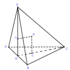 $PN = MQ = \dfrac{1}{3}.\dfrac{{\sqrt 3 }}{2} = \dfrac{{\sqrt 3 }}{6};NB = \dfrac{2}{3}.\dfrac{{\sqrt 3 }}{2} = \dfrac{{\sqrt 3 }}{3}$